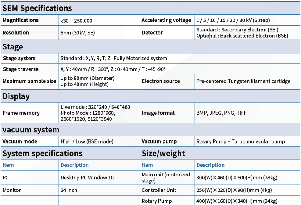 - Bench Top Scanning electronic Microscope (SEM)