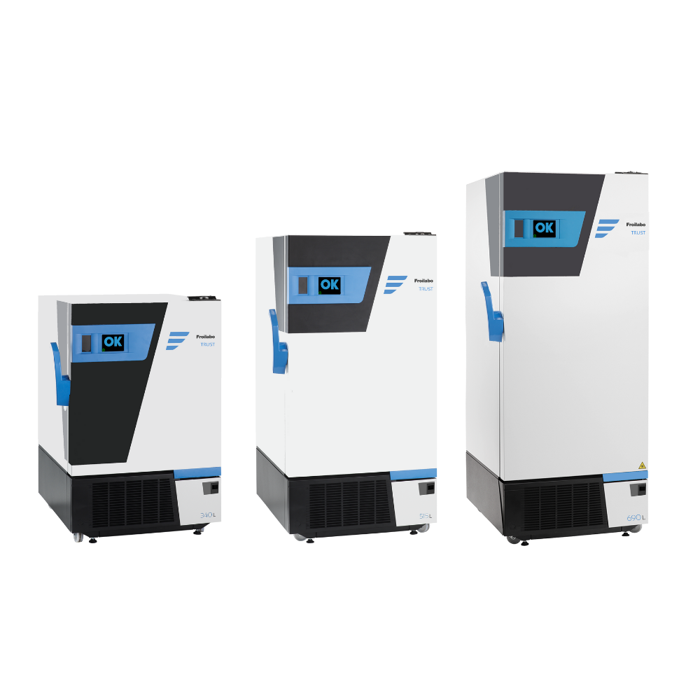 The Trust range consists of 3 volumes: 340, 515 and 690 L with a minimum footprint. This is equivalent to storage for up to 48000 cryotubes (2 mL).